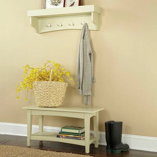 Add the perfect finishing touch with this Alaterre Shaker Cottage bench and coat hook set.