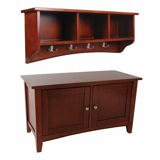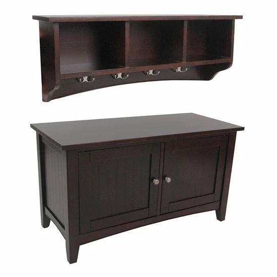 You’re sure to get compliments on this Alaterre Shaker Cottage storage bench and coat hook set.