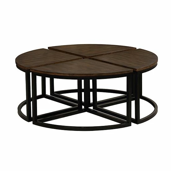 Combine the Arcadia Acacia Wood Round Wedge Table 4-Piece Set to make one table or spread around the room for convenient surface area.