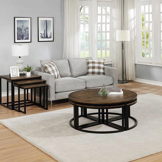 The Alaterre Furniture Arcadia Acacia Wood Round Coffee Table with Nesting Tables will make the perfect complete addition to the living room.