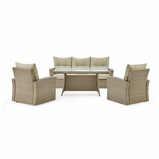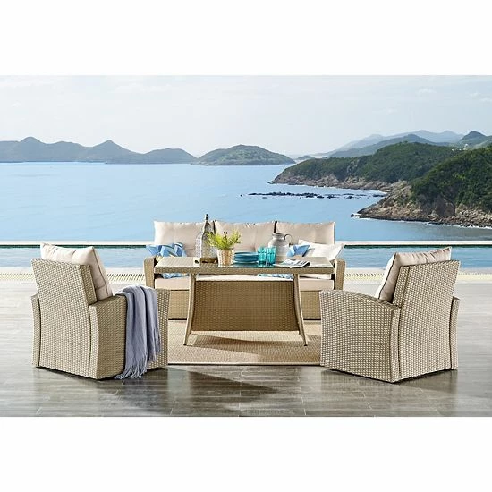 Entertain guests in style with this Alaterre Furniture Canaan Outdoor Wicker Deep-Seat Couch, Arm Chair & Coffee Table 4-piece Set.