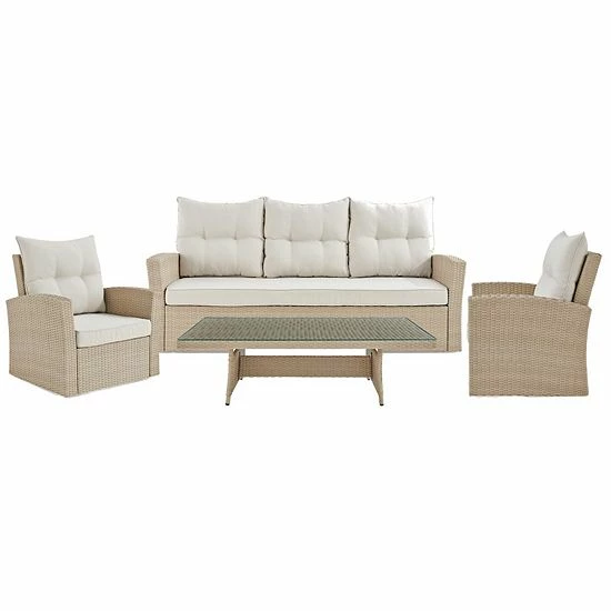 Entertain guests in style with this Alaterre Furniture Canaan Wicker Outdoor Deep-Seat Couch, Arm Chair & Coffee Table 4-piece Set.
