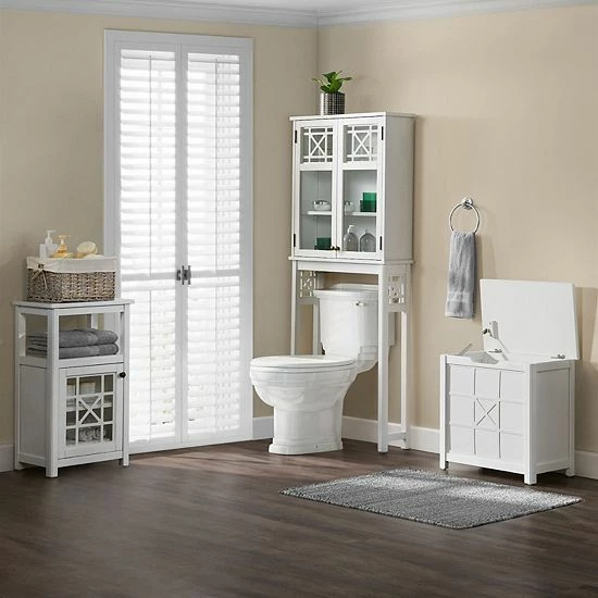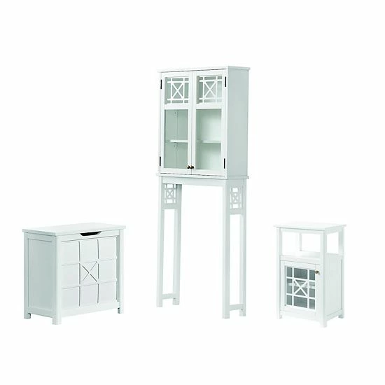 - Over-the-toilet shelf, hamper, floor cabinet & wall cabinet