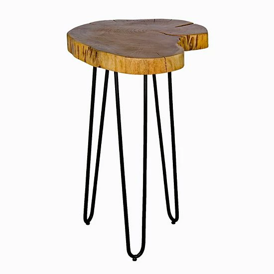 This Alaterre Furniture Hairpin Live Edge Round End Table is sure to be a conversation piece for your guests.