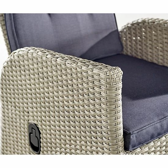 - Polyethylene resin wicker, aluminum, polyester, polyurethane foam, polyester fiber batting
