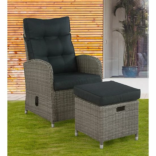 Entertain guests in style with this Alaterre Furniture Monaco All-Weather Wicker Outdoor Recliner Chair & Ottoman 2-piece Set.