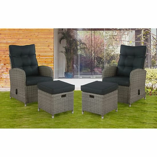 Entertain guests in style with this Alaterre Furniture Monaco Patio Reclining Chair & Ottoman 4-piece Set.