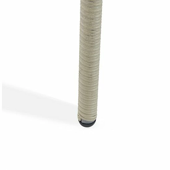 - Tempered glass, steel, polyethylene resin wicker, polyester, polyurethane foam, polyester fiber batting